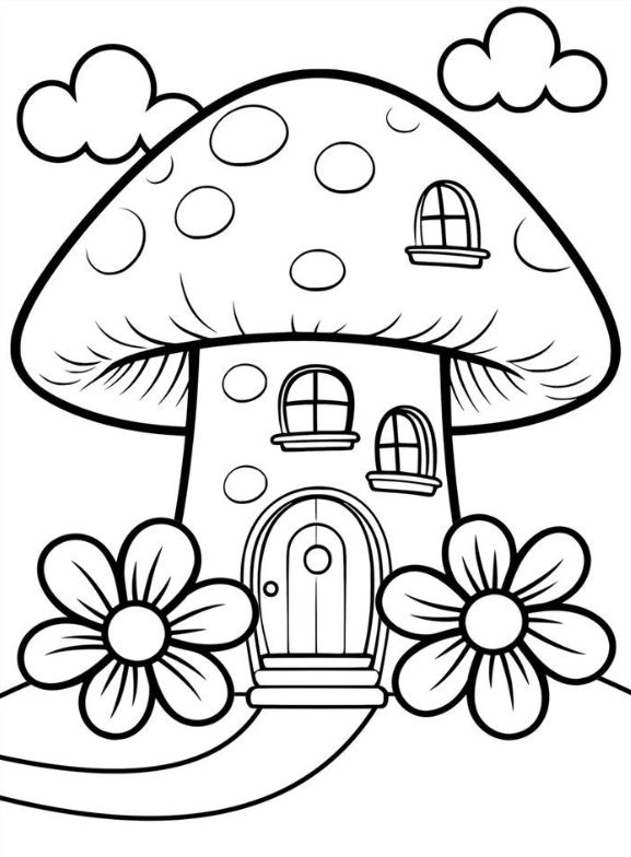 3. Free mushroom house coloring page with flowers Mushroom house coloring House coloring page House coloring Coloring sheets Coloring pages Printable coloring pages