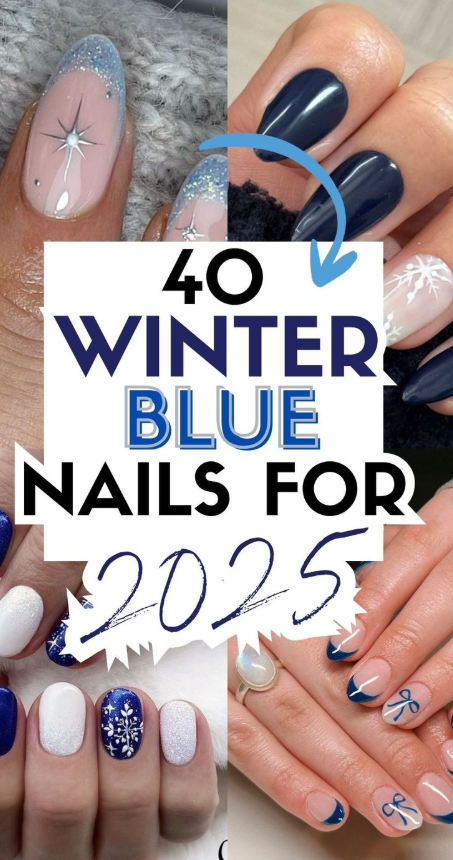 14. Winter blue nails for 2025 Blue winter nail ideas Blue winter nail Nails blue winter Blue winter nails Winter blue nails Holiday nails blue
