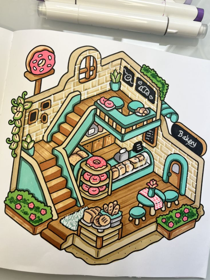 Little Corner Coloring Pages Finished capture the charm of cozy, quiet moments brought to life ...