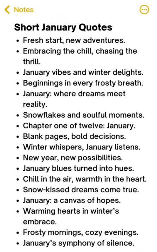 January Quotes capture the spirit of new beginnings, fresh motivation, and quiet reflection that comes with the first month of the year. They often focus on themes like renewal, goal-setting, self-growth, and embracing a clean slate after the busy holiday season. With a calm and hopeful tone, January quotes encourage letting go of the past and stepping forward with clarity and intention.