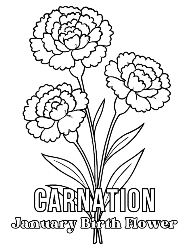 10. Carnation January Birth Flower Botanical Line Art to Color In