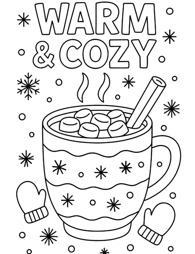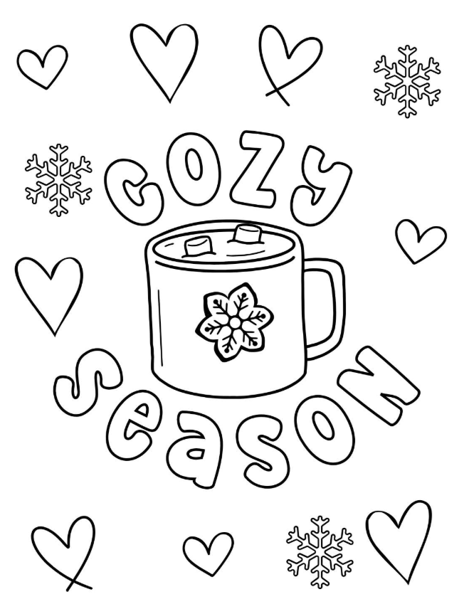 12. Cozy Season Hot Cocoa Mug Picture to Color for Kids