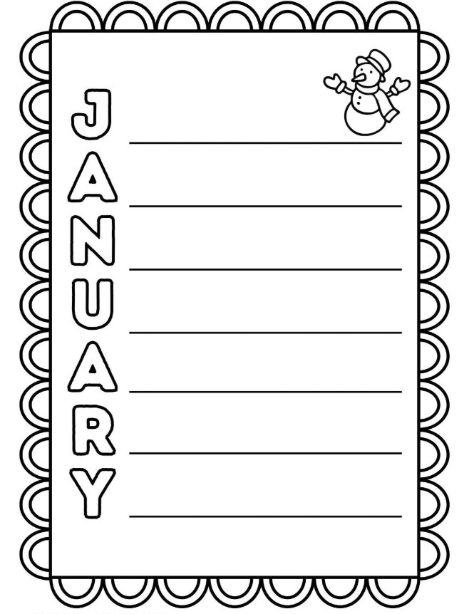 5. January Acrostic Poem Worksheet with Snowman Art to Color In