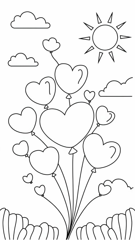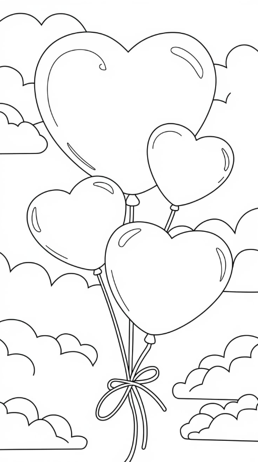 13. Heart-Shaped Balloon Coloring Page
