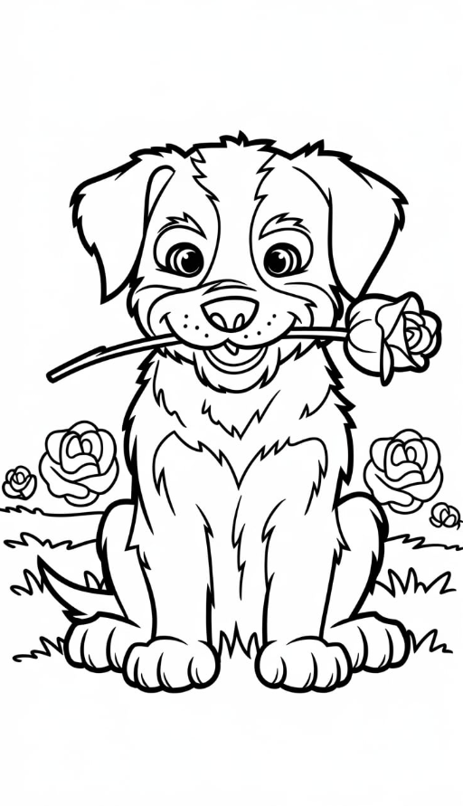 9. Playful Puppy with a Rose